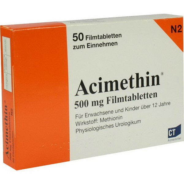 Acimethin® 500 mg Filmtabletten Wirkstoff: Methionin Anwendungsgebiete: Als harnansäuernde Substanz: mit bakteriostatischer Wirkung bei Harnwegsinfektionen, auch zur Rezidivprophylaxe bei Patienten mit neurogenen Blasenfunktionsstörungen, zur Optimierung der Wirkung von Antibiotika mit Wirkungsoptimum im sauren Urin (pH 4-6): z. B. Ampicillin, Carbenicillin, Sulfonamiden, Nalidixinsäure, Nitrofurantoin, zur Vermeidung der Steinneubildung bei Phosphatsteinen (Struvit, Karbonatapatit, Brushit). Apothekenpflichtig. Stand: Mai 2012 Zu Risiken und Nebenwirkungen lesen Sie die Packungsbeilage und fragen Sie Ihren Arzt oder Apotheker.