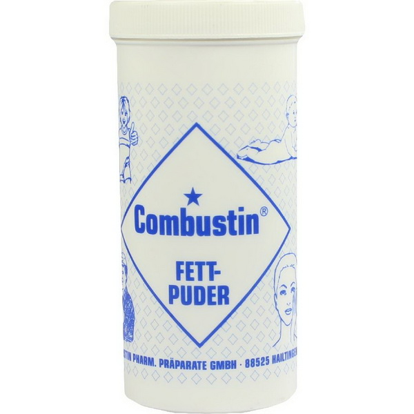 100g Fett-Puder enhalten Talkum, Kaolin, Zinkoxid, Paraffinum liquidum, Parfüm