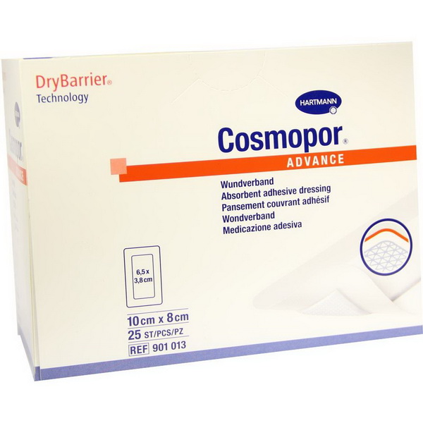 Cosmopor® Advance sind mit der innovativen DryBarrier® Technologie ausgestattet, die ermöglicht, dass das Wundexsudat in das Wundkissen aufgenommen, aber nicht wieder abgegeben wird – selbst unter Druck. Diese Kombination von hoher Saugkapazität und geringster Rücknässung erlaubt, dass der Post-OP-Verband länger auf der Wunde verweilen kann. Bei dem Produkt handelt es sich um einen sterilen selbstklebenden Wundverband aus weichem Trägervlies, ausgestattet mit einem hoch absorbierenden Wundkissen