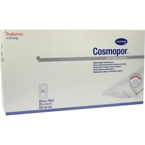 Cosmopor® Antibacterial sind mit der innovativen DryBarrier® Technologie ausgestattet, die ermöglicht, dass das Wundexsudat in das Wundkissen aufgenommen, aber nicht wieder abgegeben wird – selbst unter Druck. Diese Kombination von hoher Saugkapazität und geringster Rücknässung erlaubt, dass der Post-OP-Verband länger auf der Wunde verweilen kann. Bei dem Produkt handelt es sich um einen sterilen selbstklebenden Wundverband aus weichem Trägervlies, ausgestattet mit einem hoch absorbierenden Wundkissen. Bei Cosmopor Antibacterial befindet sich innerhalb des Wundkissens zusätzlich eine mit metallischem Silber beschichtete Schicht, die eine antibakterielle Wirkung gegenüber grampositiven und gramnegativen Bakterien aufweist.