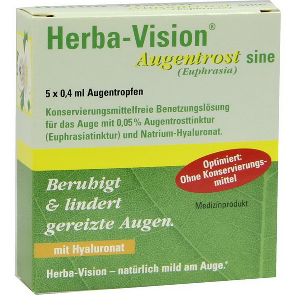 Konservierungsmittelfreie Lösung zum Befeuchten und Benetzen der Augen mit 0,05 % Augentrosttinktur, hergestellt gemäß HAB 2000, und mit der körpereigenen benetzenden Substant Natrium-Hyaluronat.