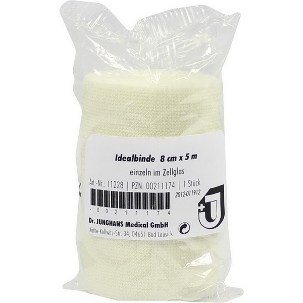 100 % Baumwolle, kräftig gedehnt 5 m, im Zellglas mit Verbandklammern, textilelastische Idealbinde mit kurzem Zug für Stütz- und Entlastungsverbände.