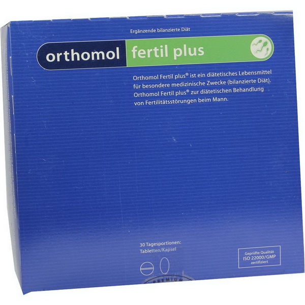 Orthomol Fertil plus™ ist ein diätetisches Lebensmittel für besondere medizinische Zwecke (bilanzierte Diät). Orthomol Fertil plus™ zur diätetischen Behandlung von Fertilitätsstörungen beim Mann.