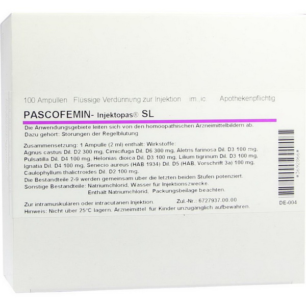 Die Wirkstoffe sind: 1 Ampulle (2 ml) enthält: Agnus castus Dil. D2 300 mg, Cimicifuga Dil. D6 300 mg, Aletris farinosa Dil. D3 100 mg, Pulsatilla Dil. D4 100 mg, Helionias dioica Dil. D3 100 mg, Lilium tigrinum Dil. D3 100 mg, Ignatia Dil. D4 100 mg, Senecio aureus (HAB 1934) Dil. D5 (HAB, Vorschrift 3a) 100 mg, Caulophyllum thalictroides Dil. D2 100 mg. Die Bestandteile 2-9 werden gemeinsam über die letzten beiden Stufen potenziert.