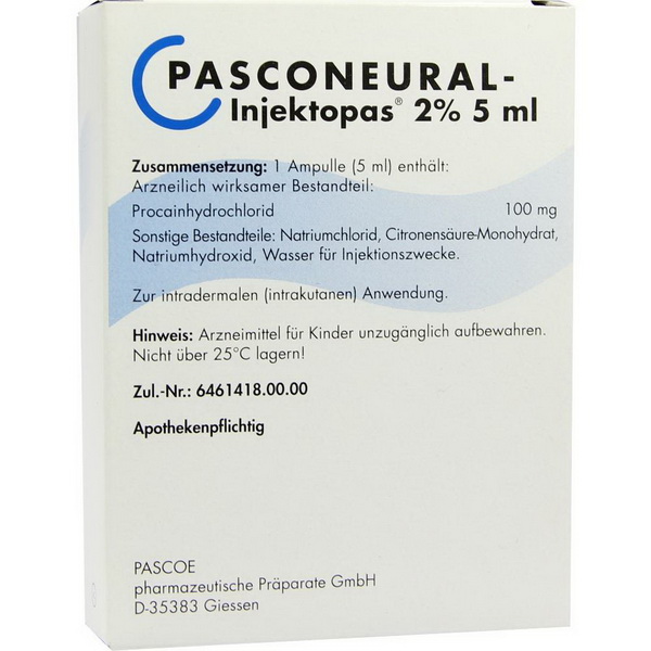 - PASCONEURAL-Injektopas 2 % wird intrakutan injiziert.