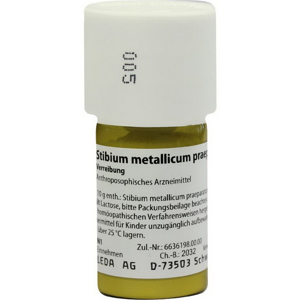 10 g enthalten: Wirkstoffe: Stibium metallicum praeparatum Trit. D10 10 g.